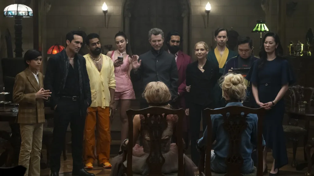 Ele se destaca dentro de um elenco de apoio muito sólido. É ótimo ver Sarah Michelle Gellar de volta à ação, Elijah Wood adiciona charme à narrativa, e o desfile de milionários excêntricos à beira da caricatura funciona bem dentro da proposta. Alguns podem achar que certos estereótipos culturais beiram o ofensivo, mas o filme equilibra isso ao manter os personagens imprevisíveis.