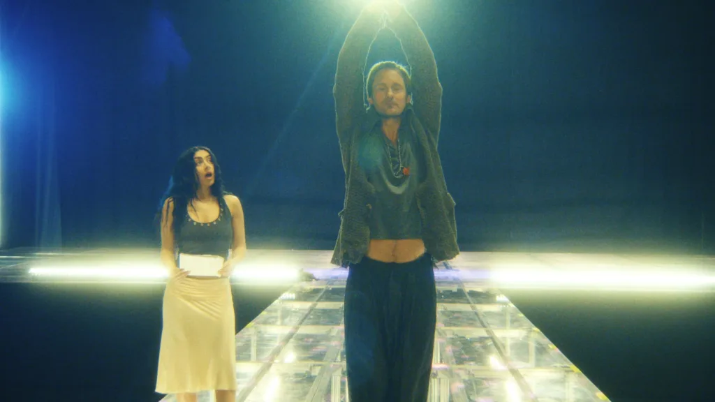 Aqui, Charli interpreta uma versão inflada de si mesma, presa entre gravadora, marcas, executivos e um diretor “visionário” que claramente acredita que Coldplay é vanguarda. O filme que deveria eternizar o fenômeno brat vira palco de disputas criativas, contratos suspeitos e decisões tomadas via Zoom dentro de uma limusine. É uma espécie de reality show que sabe que é reality show, mas também que quer ser sátira industrial. Às vezes acerta em cheio. Às vezes parece que esqueceu o próprio ritmo, diminuindo o tom de deboche e acidez.