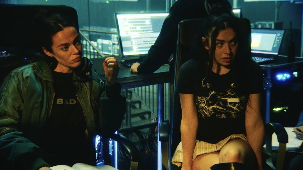 Charli, como atriz, funciona melhor quando abraça o lado mais brat mesmo: mercurial, um pouco egoísta, estrategicamente confusa. Ela coloca a equipe uns contra os outros, diz sim para tudo e depois parece surpresa com as consequências. Fica presa entre ser fiel a si mesma ou continuar em ascensão. Não chega a ser vilã, mas também não quer ser santa. É uma estrela pop tentando descobrir se prolongar “o momento” vale a destruição criativa. Há algo honestamente interessante nisso.